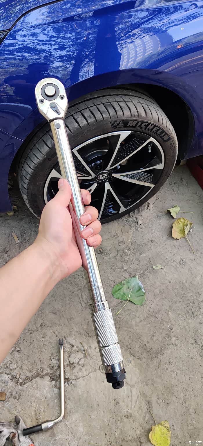 拿出扭力扳手, 90Nm的标准扭矩上紧轮毂螺丝