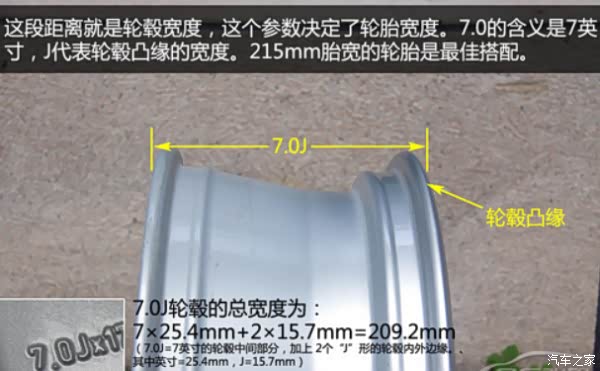 轮毂的宽度是7J、8J,其实,这里的数字代表的就是轮毂的宽度,而J是代表轮毂凸缘的形状和高度