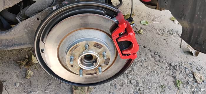 离近拍一张,显得刹车盘 卡钳有点小了, 下一步打算改6活塞卡钳 刹车盘