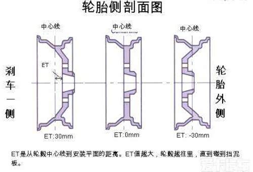 改轮毂之前一定要做好功课,下面借用度娘的图简单讲下轮毂的ET 和J值: