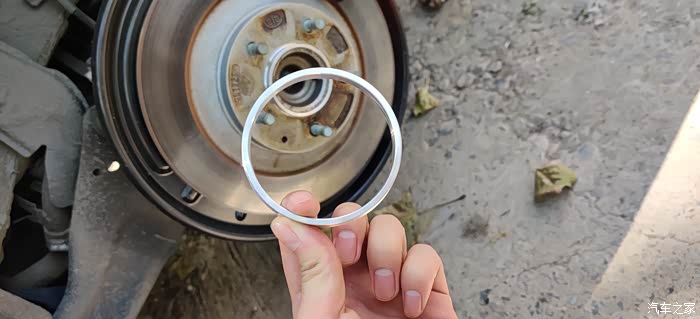 变径圈装到车轴上的样子,中间那个银色圆环就是,不过要记得先把轴头铁锈用钢丝刷磨掉哦