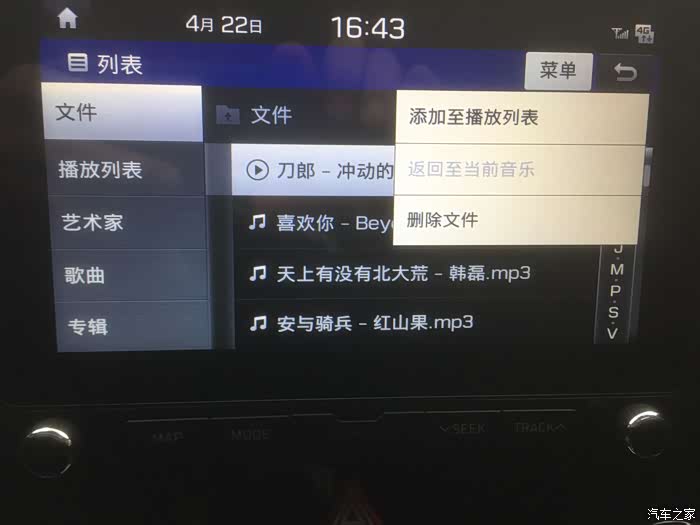 听音乐,这里必须要说明一下,车载usb接口是长期供电的,U盘不建议一直都插在车上,特意致电北现客服确认的,他们也不建议长期插着。但每次插拔又不方便,后来经过我仔细钻研,原来U盘的歌曲是可以拷贝到车上的。