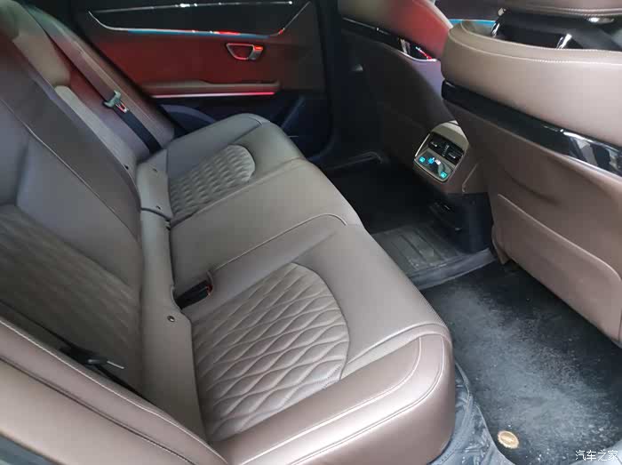 后排空间很宽大,座椅很厚实,还有可以单独控制温度的独立温区空调,乘坐起来也是一种享受。