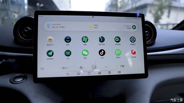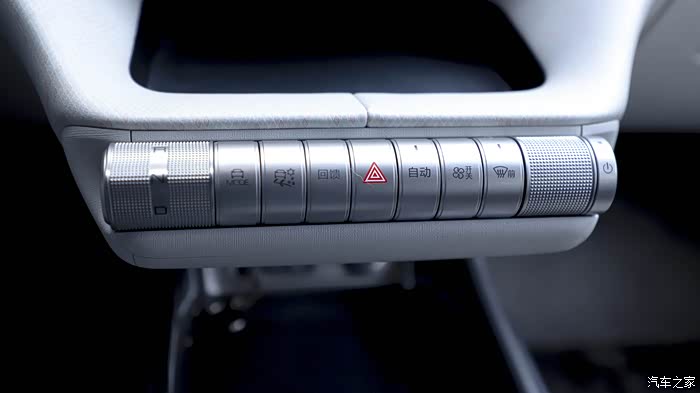 车内多个地方模仿了海豚的样子,比方说这个空调出风口,还有以上的浪花,还有门把手,很有设计感。