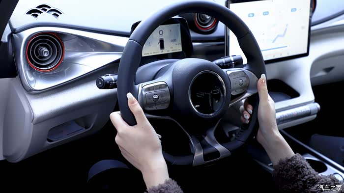 海豚的内饰也很有个性,灰色和黑色的搭配显得很有高级感,而红色的点缀又增加了几分活泼感,中间是比亚迪的自适应旋转悬浮屏,尺寸达到12.8英寸,搭载的智能系统很聪明,可以用语音控制车内的常用功能,让我的出行变得趣味十足。