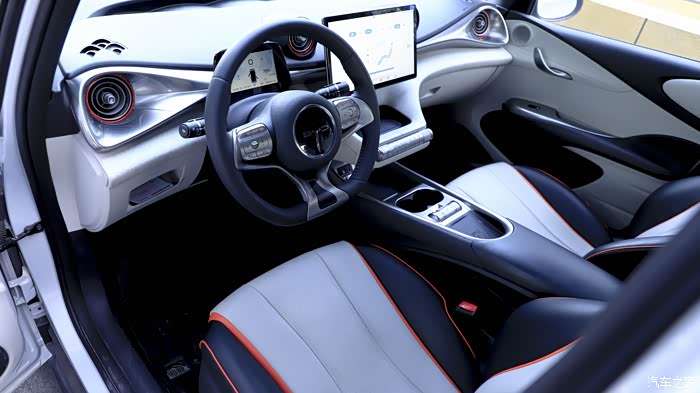 在配色方面,橙色后视镜与白色车身显得很有活力。