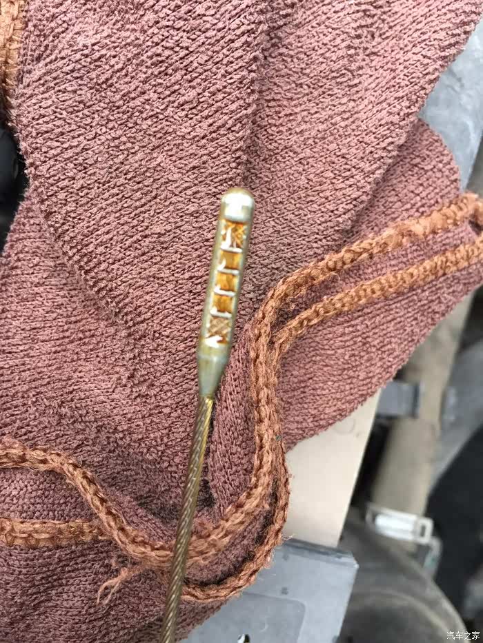 这时候你不要以为完事了,干货来了~你把机油盖盖上,然后启动车子,等半分钟,熄火,然后把油标尺抽出来擦干净,再插进去看看,你会发现,咦~油标上面显示机油下降了,这时候你可以继续加机油了,慢慢加,反复插入油标看刻度到第四格没有,如果到了,那就收拾摊子完工。