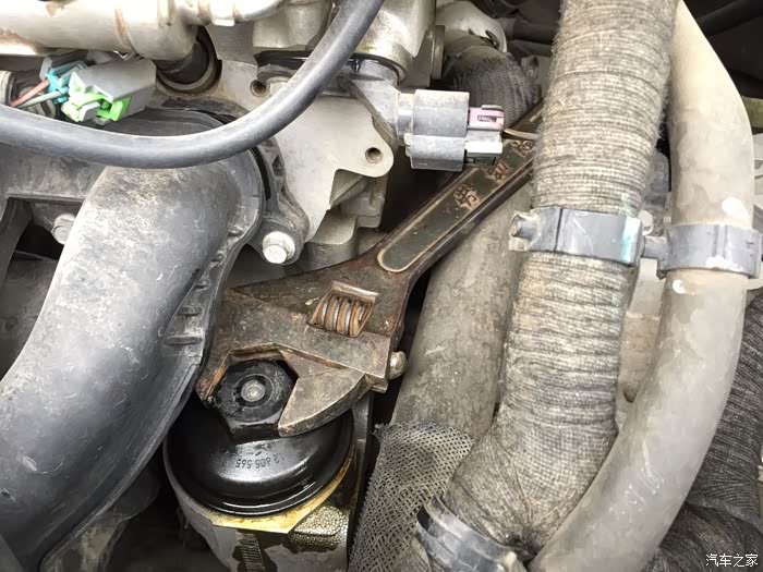 ,好了这个时候该换机油滤清器啦~拿出你的大扳手(我知道有人会问怎么不用套筒,因为戴套的谁用谁知道