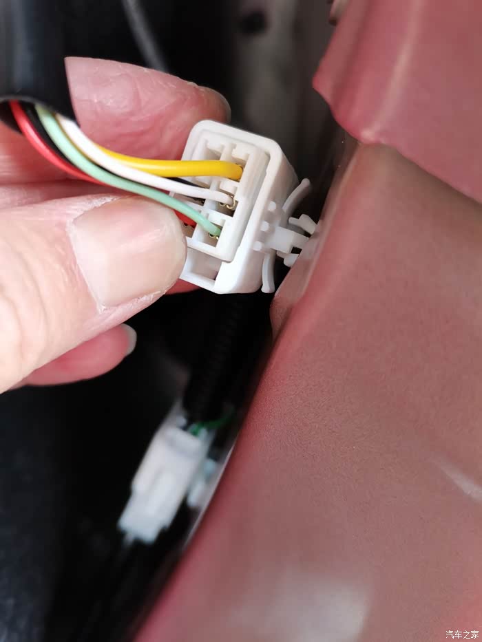 图中左边紫色是上图左边那个大头,右边绿色是我重新从倒车灯插头那边穿过来的线,本来拍了施工细节图,但是手机竟然找不到!已经不是第一次了,难道是我不会用这个手机?