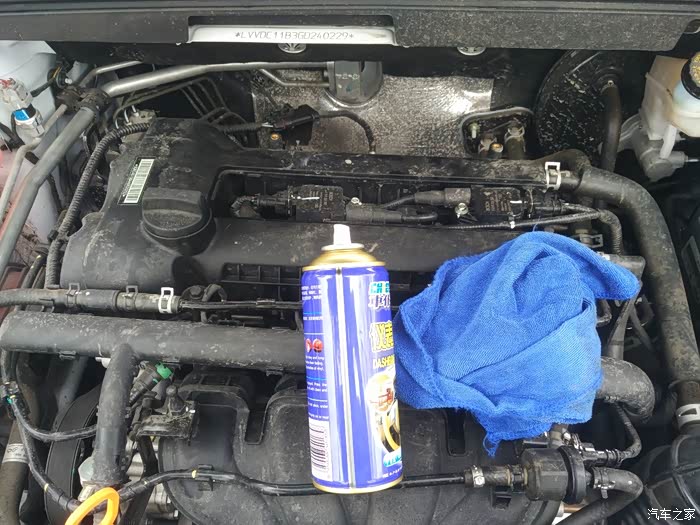 其实这上光蜡不是用来洗发动机舱的,但试了试,效果还不错哦,买专门清洗发动机舱的泡沫剂很贵的呢,去美容店洗更是好几百,我这9.9块买的玩意洗完还剩下好多呢,我真实太聪明了。