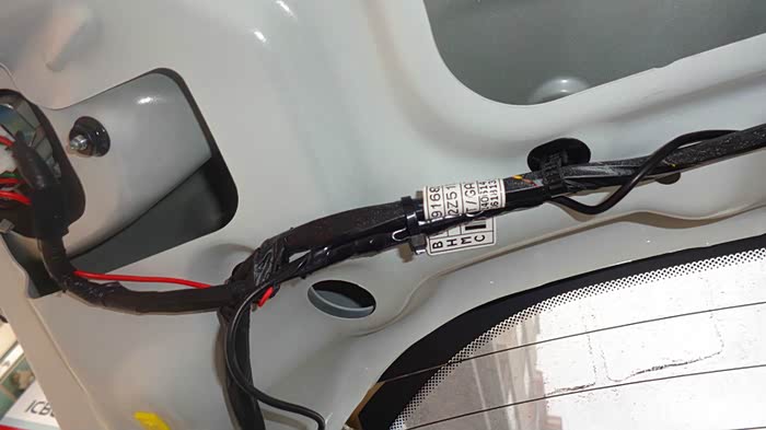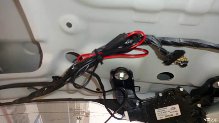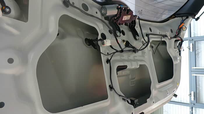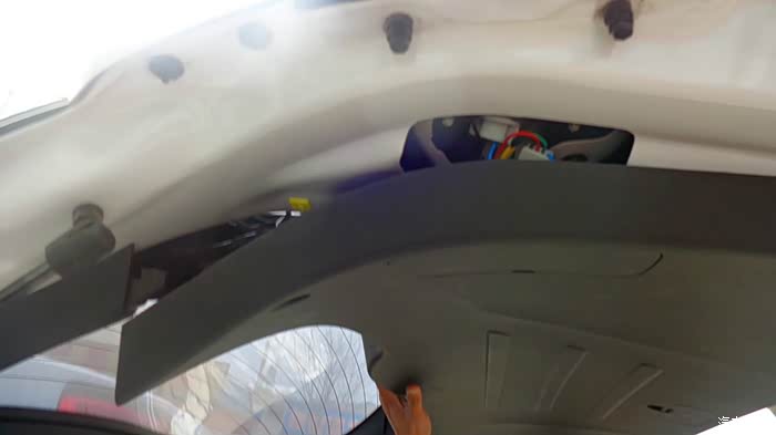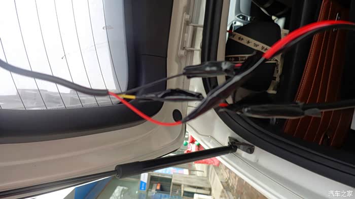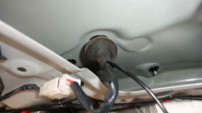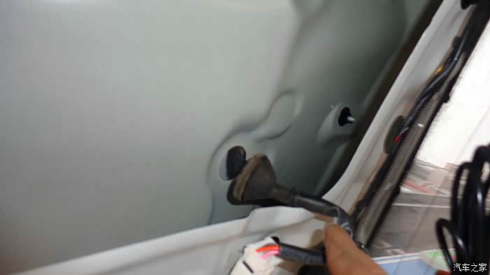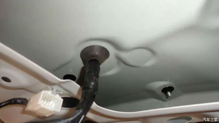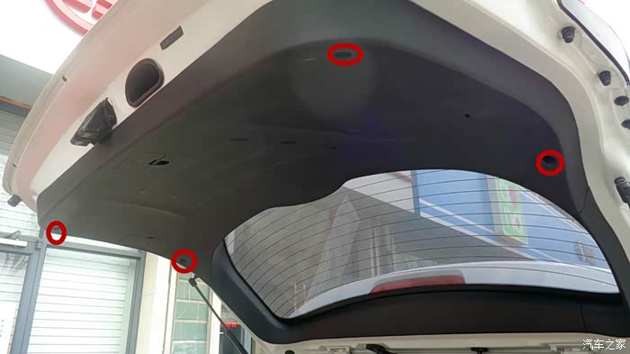 开始拆后备箱门板,红圈标记的地方有四颗螺丝,用十字改锥卸下来!