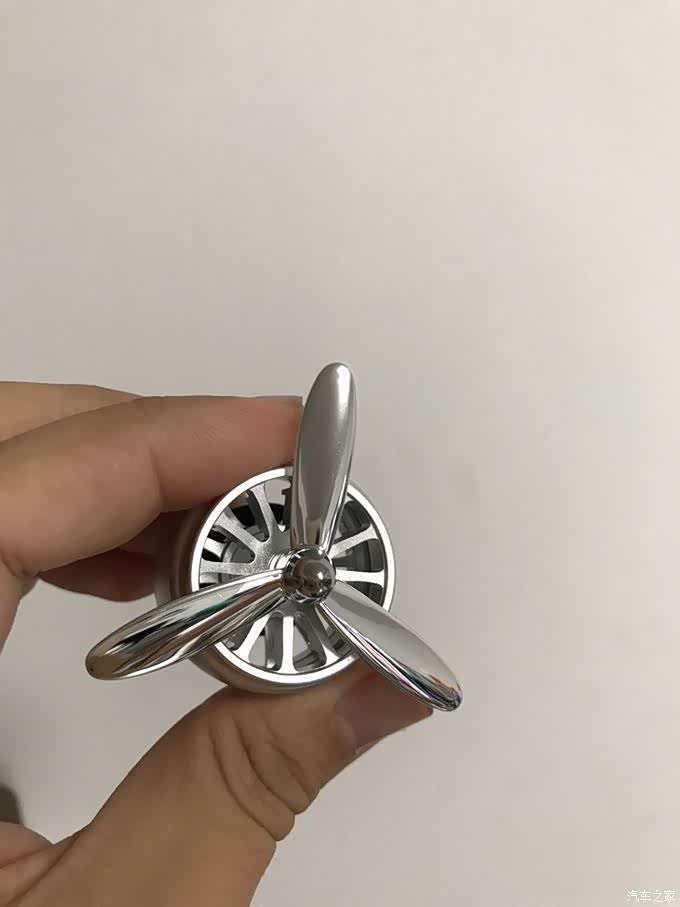 最近老婆坐在车里老说车内有一股味道,算不上臭味,就是觉得是一股车内不该有的味道,楼主因为有慢性鼻炎的缘故吧,倒是觉得没有其他特别的问道,后来将车内翻了一遍也没有发现有食品之类的残留,然后又把空调滤芯给换新了, 最后老婆说还是有味,楼主随即想到的方案就是车载香薰,最开始是看上了米家那款车载香薰,后来看到朋友车上这种飞机头造型的香薰,觉得还蛮有创意的,出风的时候螺旋桨会转动这一点个人还是比较喜欢的,圆润的造型对于楼主车内竖型的出风口也比较搭配,随即就剁手纳入囊中。到手看到产品包装采用的是这种圆形的塑料外壳的盒子装着,正面就只有一图形介绍,没有文字之类的简洁银色飞机头螺旋桨造型部分是金属材质,细看了下做工上没有瑕疵和划痕,螺旋桨的转动还是非常顺滑的车载香薰底部的夹脚为软质的硅胶材质,内置金属夹片,稳固的同时也保护内饰不会留下夹痕