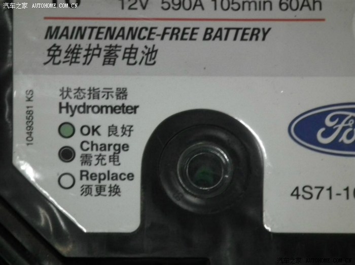 考虑后还是换新的了,换下的拍了几个照片如下:照片中有评价电瓶好坏的标识,绿色为好,至今已经有半个月了,还是绿色,显示标注为正常。