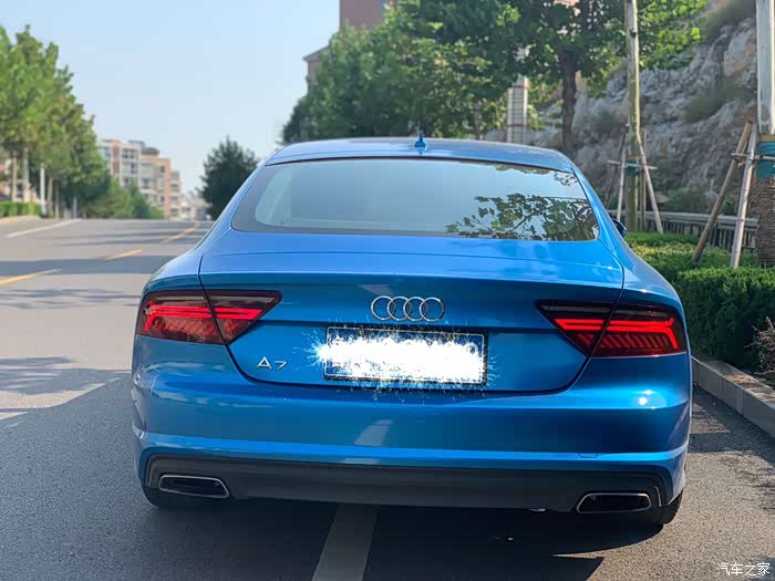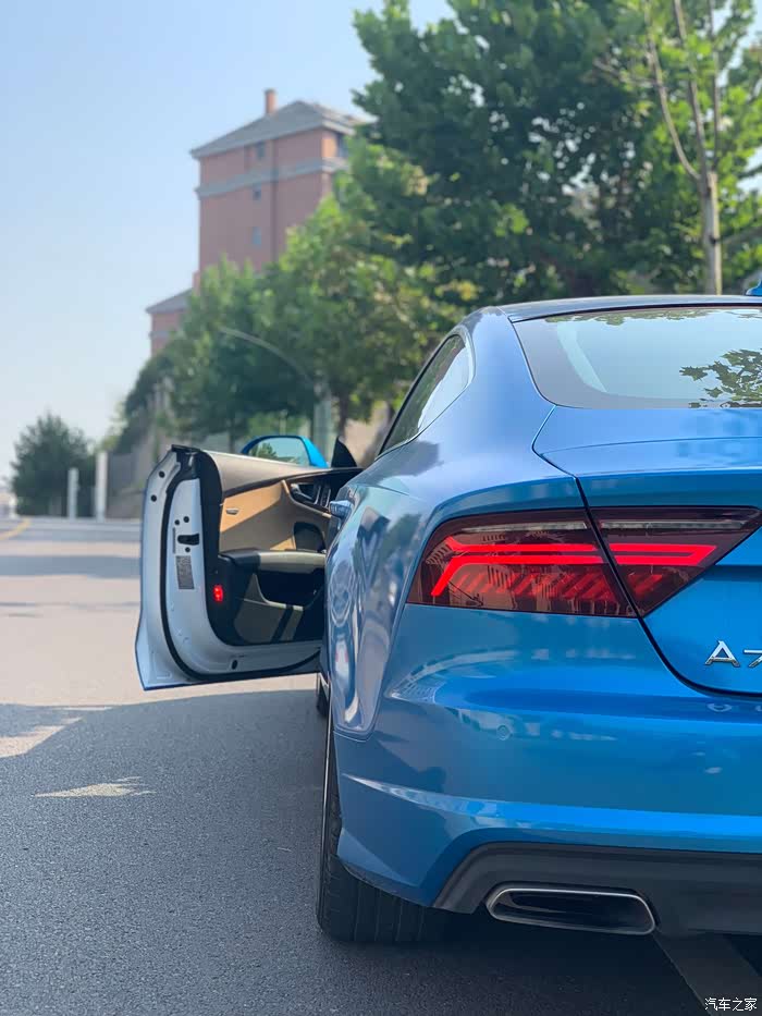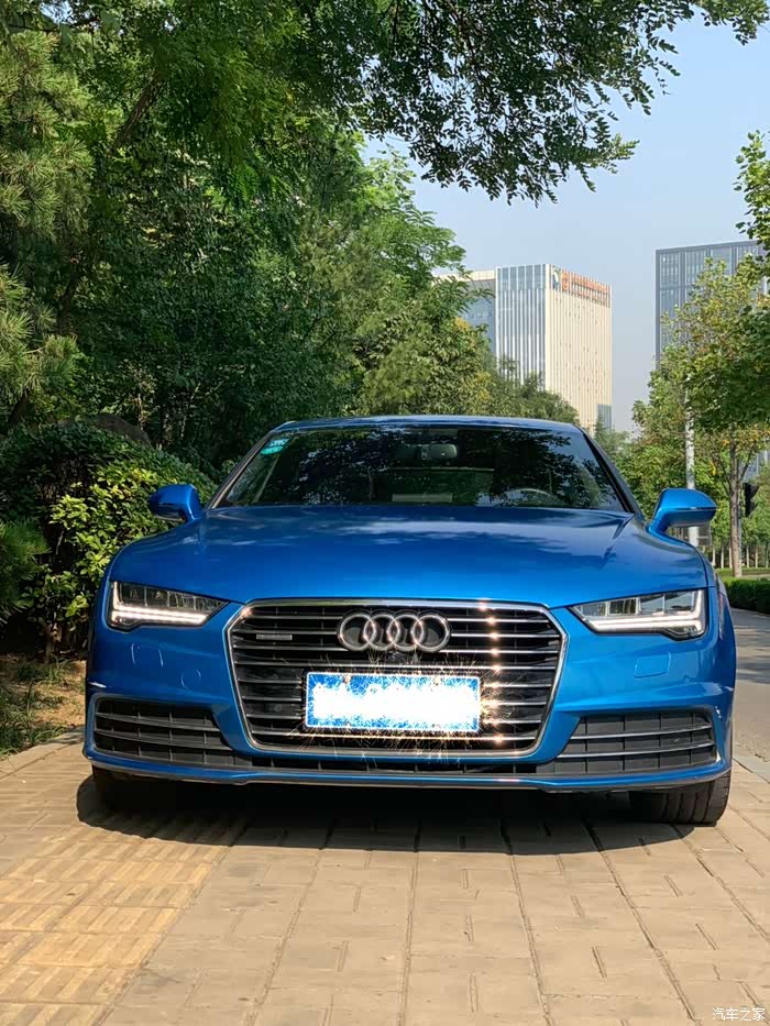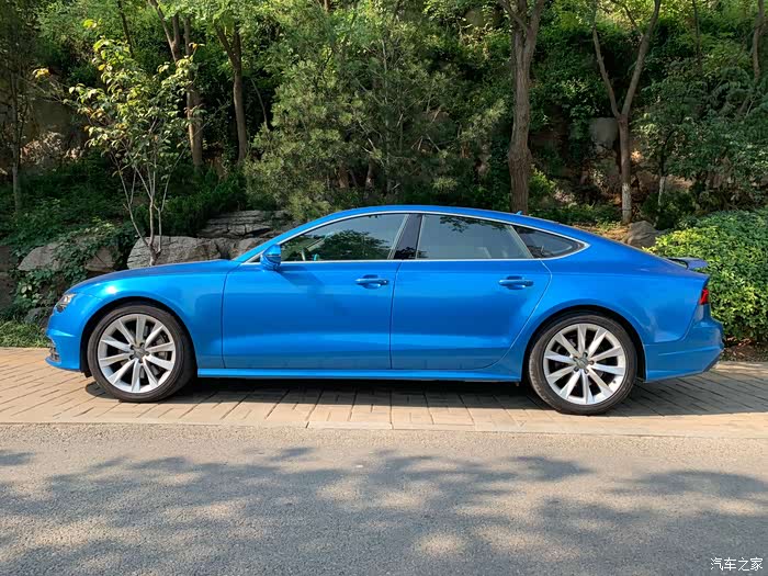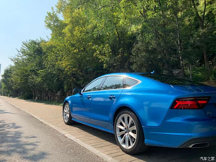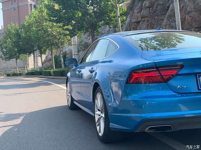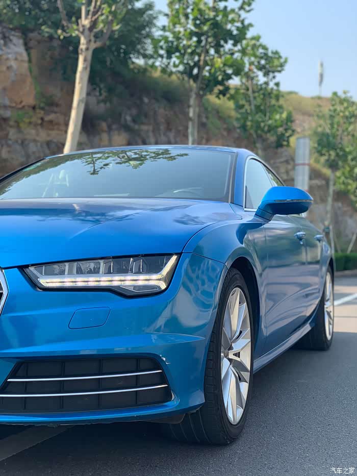学会开车以来,陆陆续续买过3辆车,大众CC,smart和这辆A7...可以看出我对无框车门和溜背车型的偏爱了吧,提车时间车是15年11月份,最初是白色,后来在街头偶遇了那辆让我目眩神迷的babyblue的RS7,就有了改色的念头。babyblue虽好,但感觉对我来说有装嫩嫌疑,后来经过比色,选择了小珍珠金属蓝。这几年的运动车型,感觉宣传车型,普遍开始使用蓝色了。媳妇说蓝色外观虽好,可惜你不是红黑内饰啊,所以差评(扎心。。)