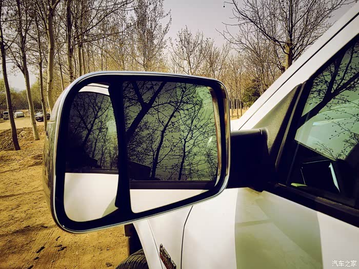 反光镜由大小两个镜片组成,驾驶员一侧大的是正常后视镜视野,左侧的小的是大视野,方便观察车后方的整体情况。而且后视镜带有电动调节和加热功能。