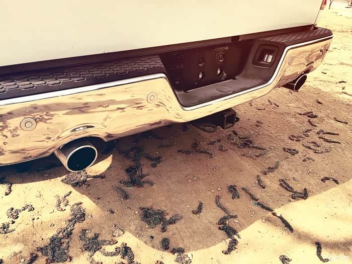 双边单出的镀铬排气,不但样子好看声音非常动听,绝对的美式浑厚有力范儿,中间的是脚踏板下面的方形孔洞是安装拖车钩用的。