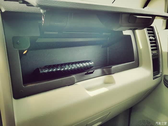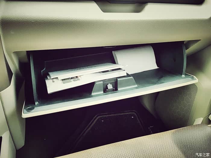 副驾驶前方的手套箱采用上下分体式开启和储物方式