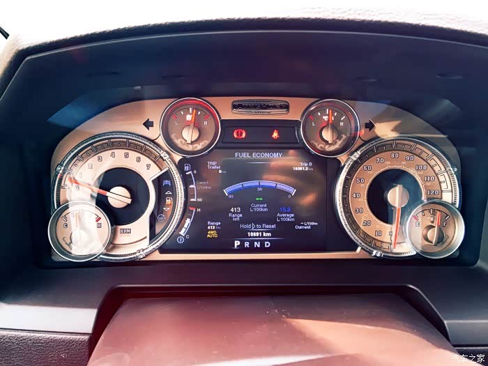由于是美规车,所以机械指针显示的是英里单位,但中央液晶屏幕可以显示公里。