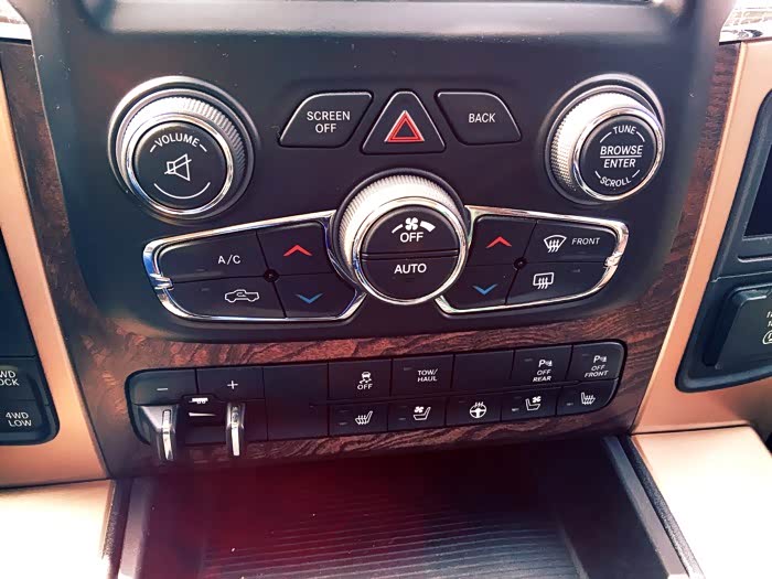 中控台按钮布局比较合理,功能真心挺丰富的。貌似现在JEEP和克莱斯勒以及道奇的中控台造型都差不多