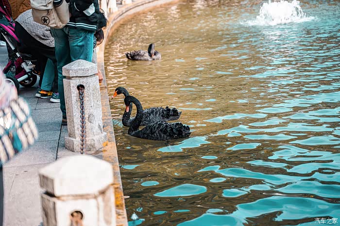 享受着行人的瞩目,孩子还可以喂食天鹅,