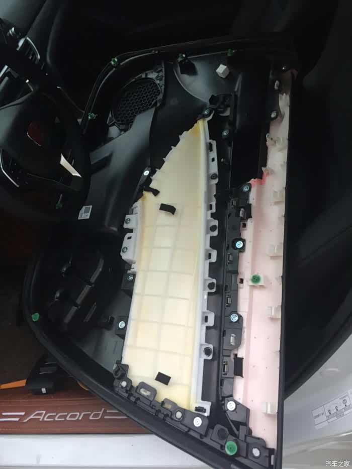 十代雅阁(豪华版以下)迎宾灯缺失非常不爽,所以今天拆开看下线路是否有无损安装的可能,拆开后心凉了,线路都没有,如果要加装只有重新走线了