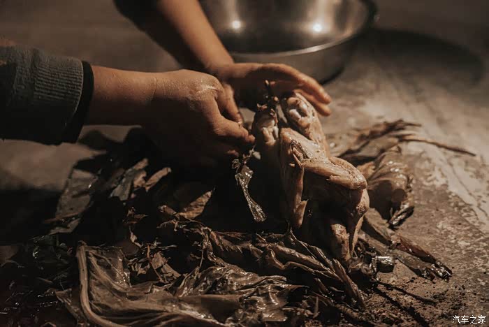 把鸡撕开,这是我这些年吃的最美味的鸡。围着篝火,大家吃着土窑鸡,聊着家常,这种生活是我很久没体会到的了。