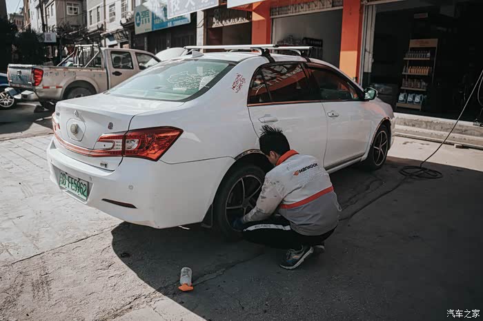平时我开这个车比较少,走在路上发现胎压不足了,找个地方打点气。