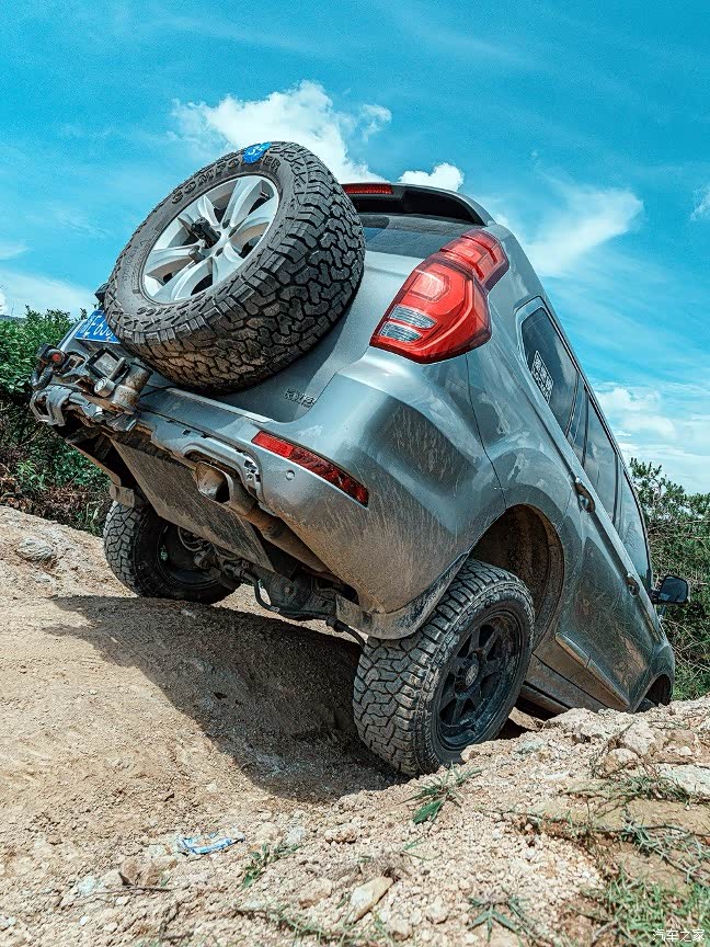 队伍为了照顾我们这种小白越野选手,选择了较为难度低的几处山坡。整体来说对车辆的难易程度是:更换 AT 胎+升高毫无问题、更换 AT 胎、素车。即使是素车只要用对驾驶模式,严格遵守指挥的行进路线,只要不紧张也都能通过。