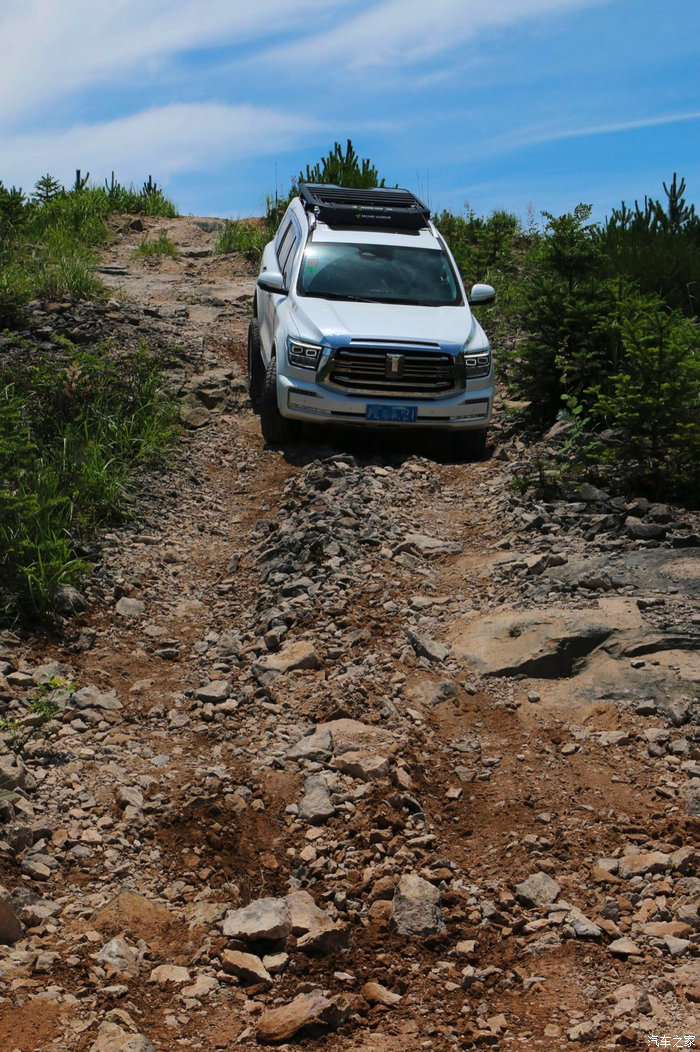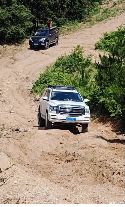 在这种沟壑比较深的路线行驶,这时候升高的优势就很明显,基本上不会托底,即使剐蹭底盘也会由底盘护板保护。所以轻度越野或穿越都建议上一套底盘护板。中度以上越野建议上高 1.5 或 2 寸。再难一点的建议更换前后杠和升级门桥换更大的轮胎。