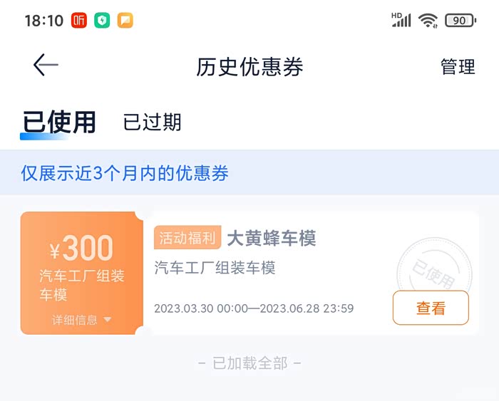 已经用车模兑换券,换了车模。4月换的,5月份到手了~
