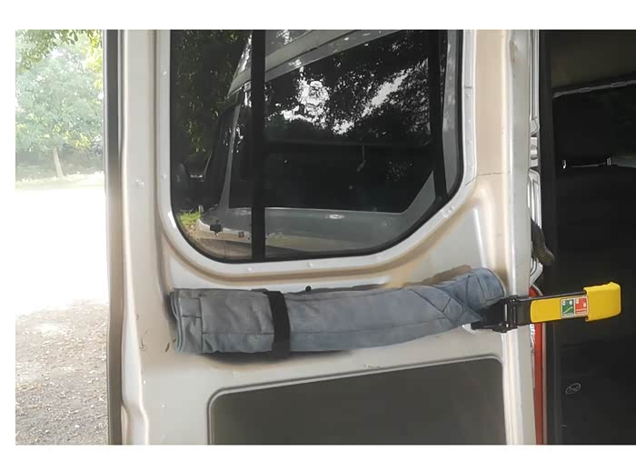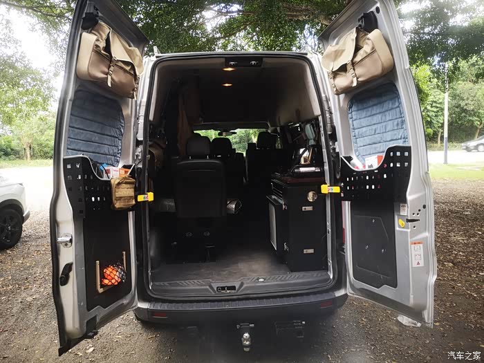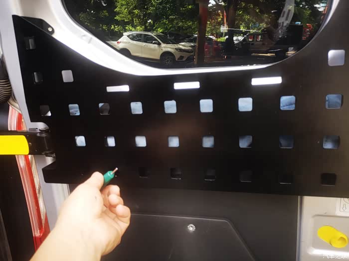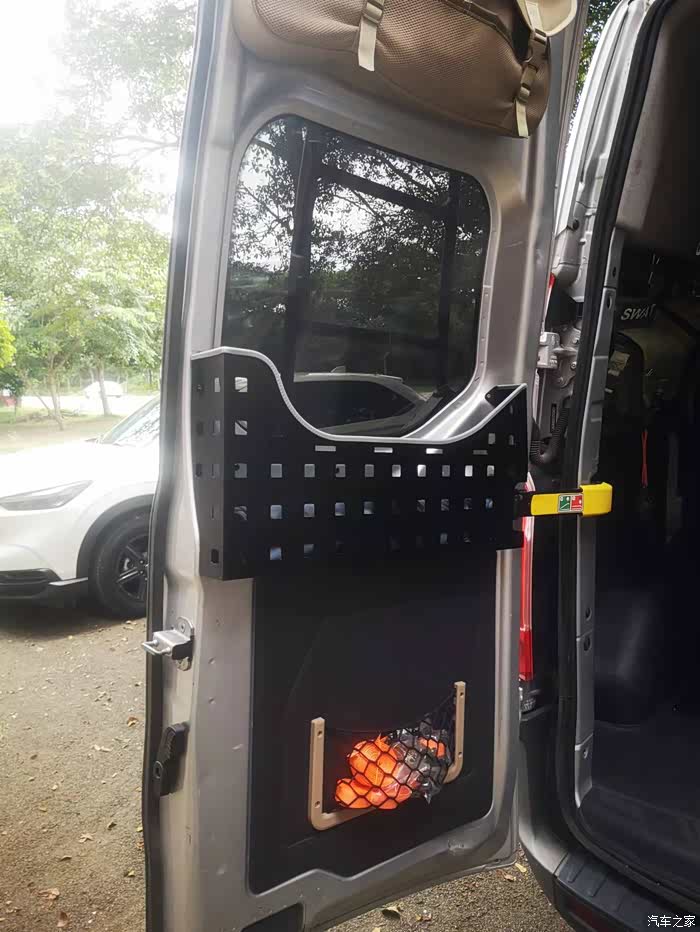 新全顺后门内部玻璃下方造型弯曲,做个钣金件装上去秒变储物槽