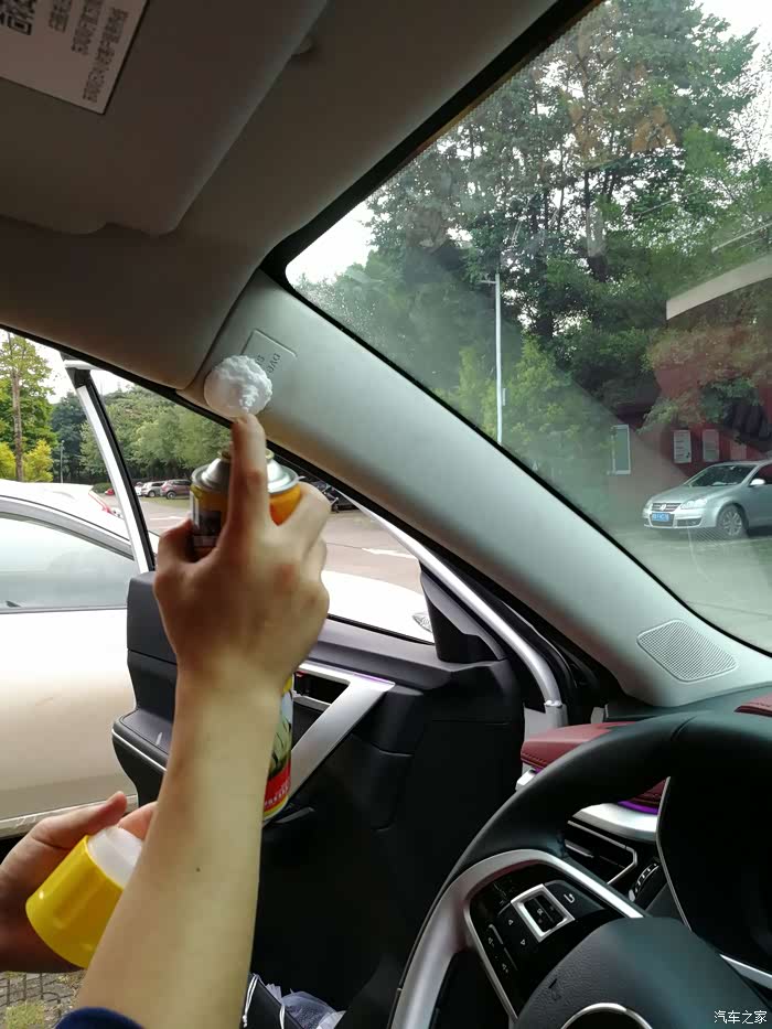 后来,通过度娘得知:一般汽车内饰件的去污方式,人家都喜欢用一种叫泡沫清洗剂的东西,方便、快捷、实用。后来网上一看这东西也不贵,就十几块钱,于是便淘了一个回来,自己动手DIY,果然立马见效,下面和大家分享分享过程: