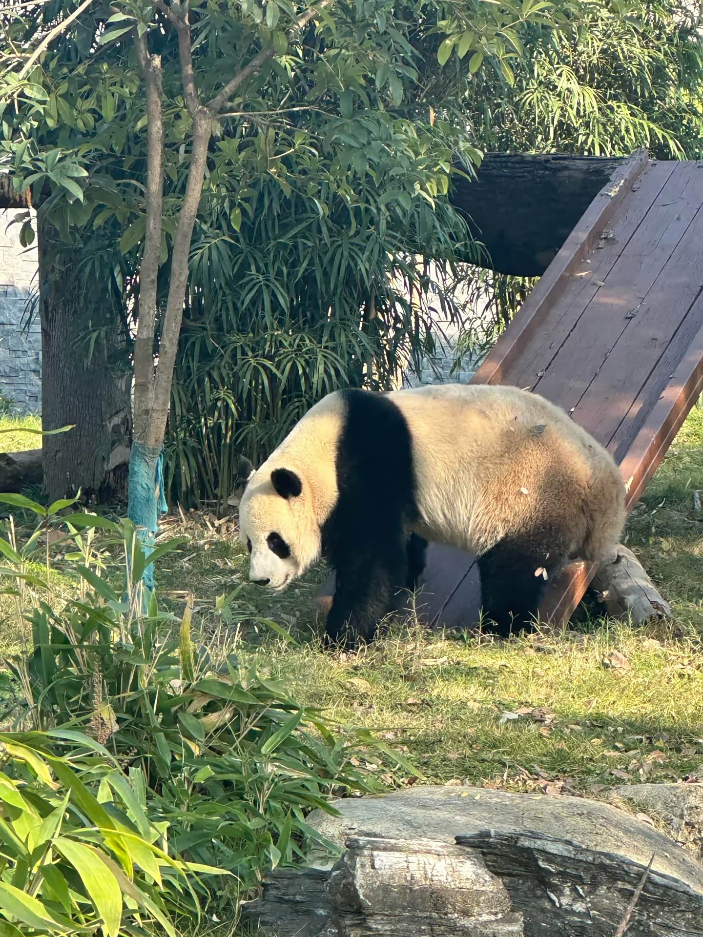 我们进园之后,直接坐观光车5r/人,直达大象谷,大象谷下车之后往前走几分钟,就到了熊猫竹海了,熊猫竹海里面有很多小熊猫,也很可爱,上午都在外面觅食,也不怕人,很多人都在拍照,我们直接带着玩往里面走,去熊猫馆先看熊猫去了。