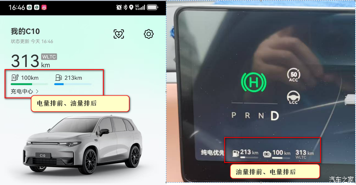 给零跑提意见:增程版的APP和车机显示电量、油量的位置相反