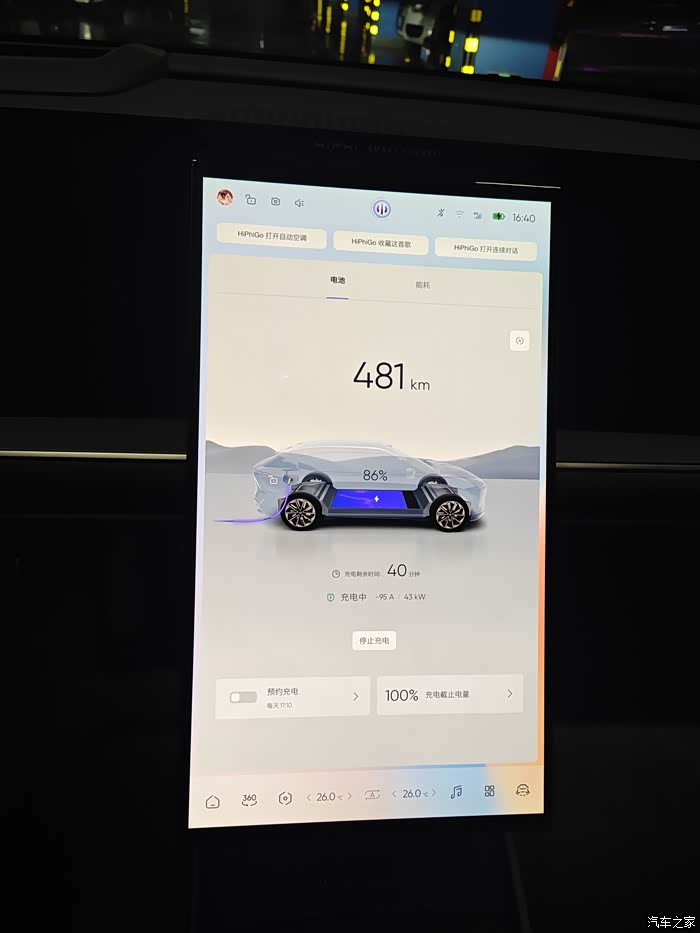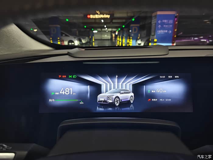 像在外面充电桩充电的话,我一般都会坐在车里等待,用副驾驶屏看看视频,或者享受一下车内的按摩,像这样的快充基本上花费40-50分钟左右,充电效率还不错,而且我一般不会充满,到80%-85%即可,这样对电池会比较好。