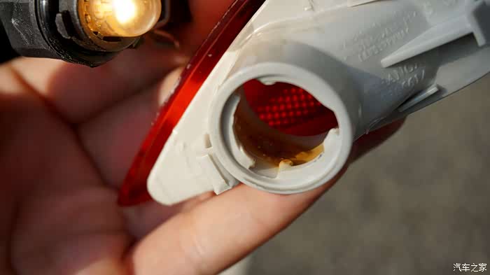 取出原车灯的灯泡,我们可以看到原车的是一只卤素灯泡