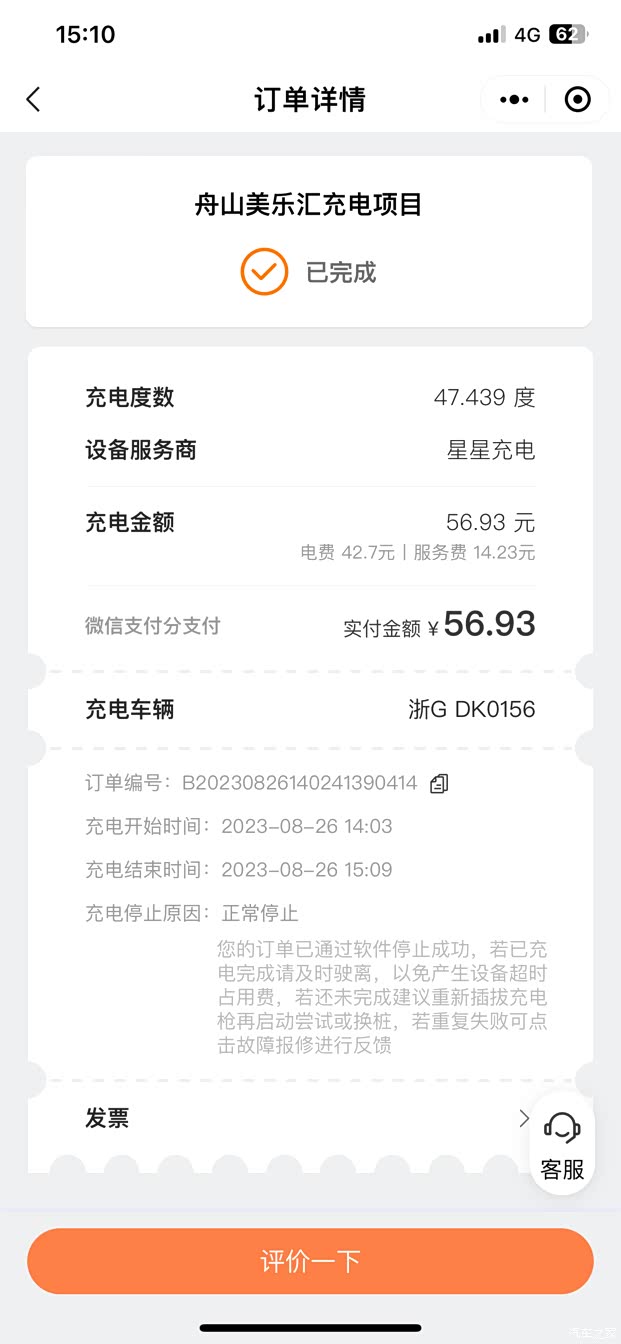 到了舟山东港,已经2点了,找了个充电桩充电,顺便附近吃了肯德基。充了一个小时,从28充到95%,花费56块。