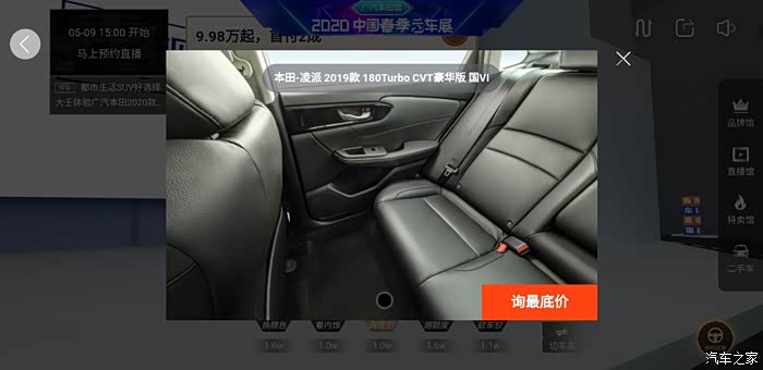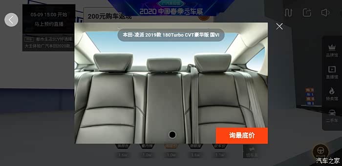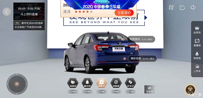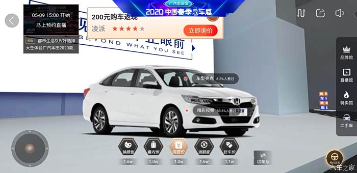 突如其来的的疫情,打乱了每年的春季车展,但是强大的互联网不耽误我们选车,就这样汽车之家2020中国春季云车展开始了,一直都比较中意本田的汽车,空间大,省油保值率高,今天就看看广汽本田凌派,前几天我看到混动版本的凌派即将上市的消息,觉得真是居家用车神车,虽然没有在云车展上看到这款车,但是外观内饰是一样的。