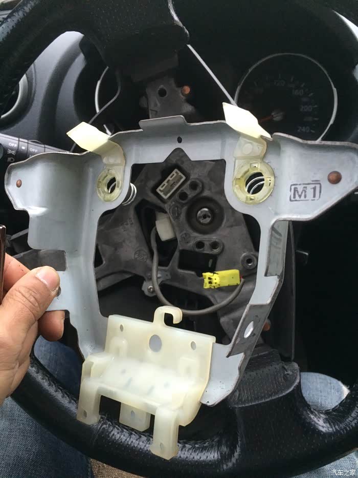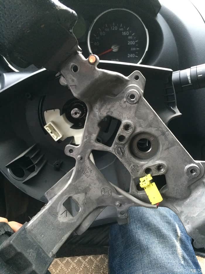 方向盘游丝总成在下面,上下饰板四个螺丝松掉