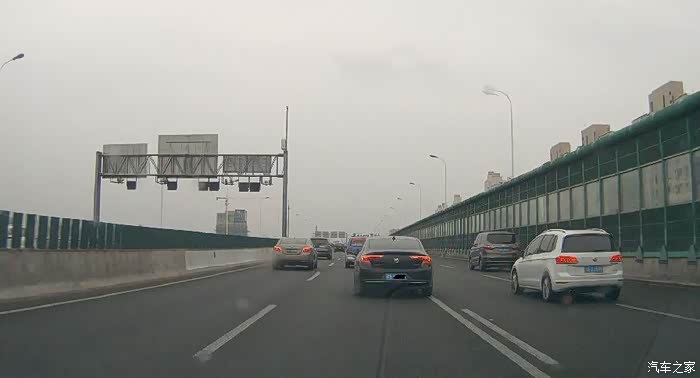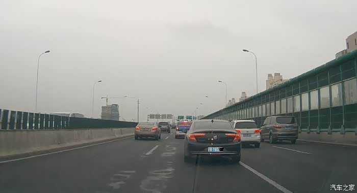 这段路还比较空,后视镜看到穿梭帝,不赶时间,随意插