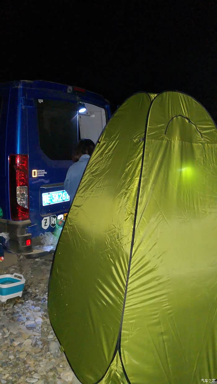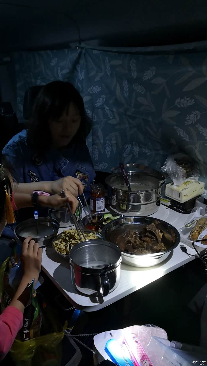 天还没有完全黑下来,我们在下面沟谷安营扎寨,我赶紧支起帐篷,拿出一体式厨柜,孩她妈开始做晚饭!天慢慢黑下来,拿出户外灯,万山丛中唯我一处亮光,四周黑漆漆的,完全的黑晚,有点寂静岭的感觉!