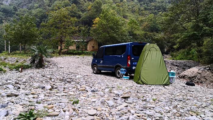 我们选择的这个扎营地点非常不错。回周高山峻岭,而我们扎营河滩点确十分开阔,离车十米远就是山中流出的溪水!
