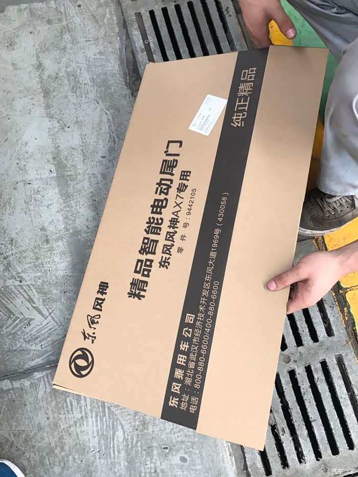 准备开箱,这个确实是东风公司提供的配件,也就是所谓的原厂正品保真配件。有人说在4S搞划不来,但是换个角度想一想,淘宝上比这个价钱便宜不了多少,回来还要找人安装,质保也是问题。直接在4S搞,没有多花几块钱,但省心、省力、省时,万一有问题扯皮也方便。