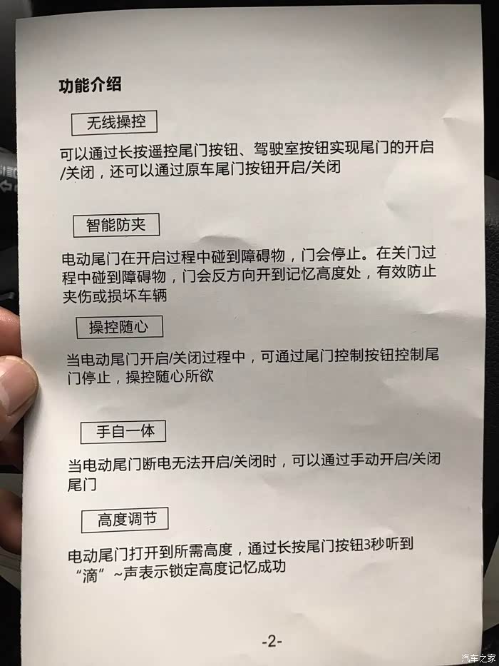 有人问会不会被车里面的长东西给顶坏电机?赶紧看了看,防夹的,遇到障碍会自动停止并抬高,比较合理!