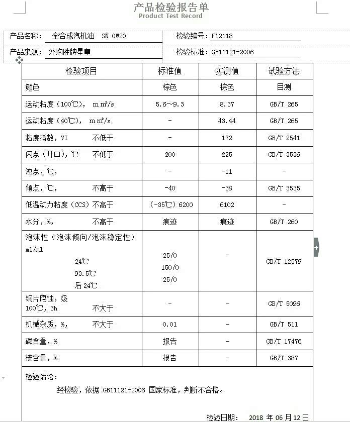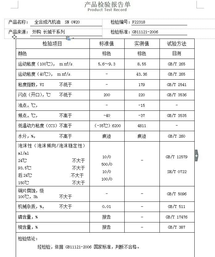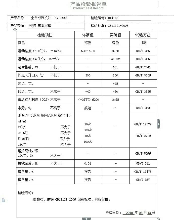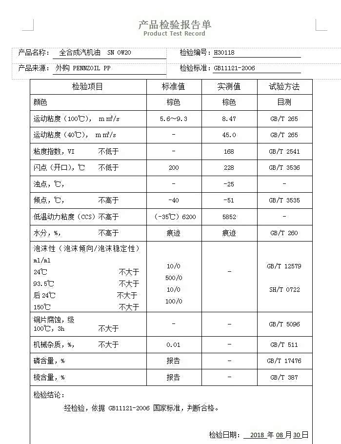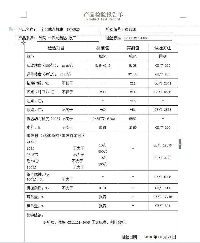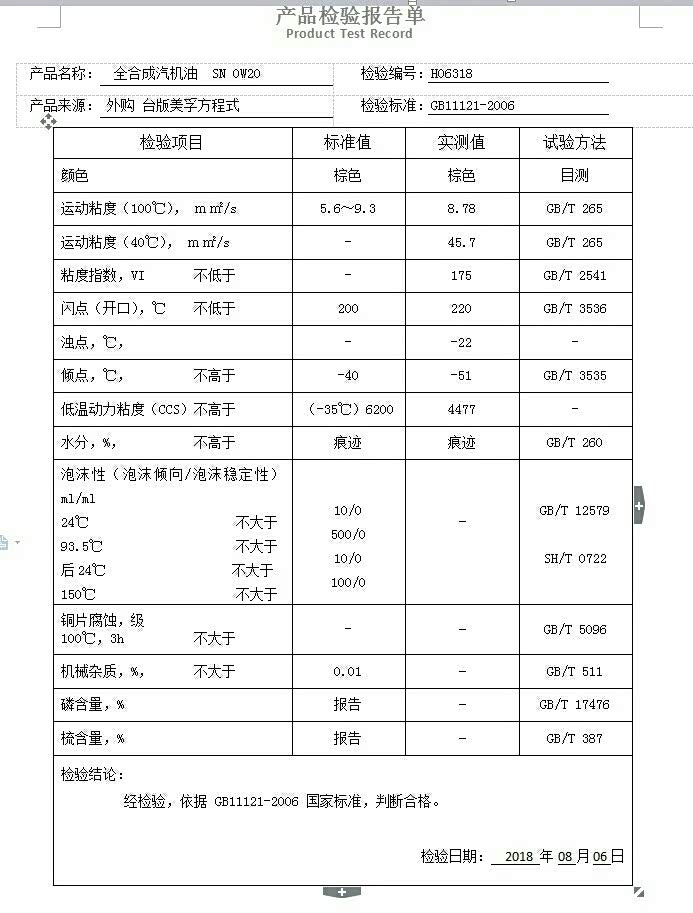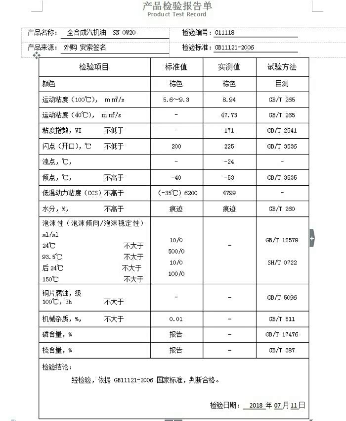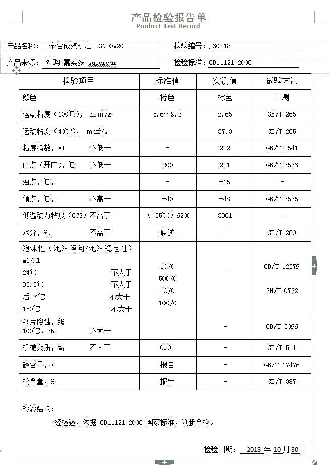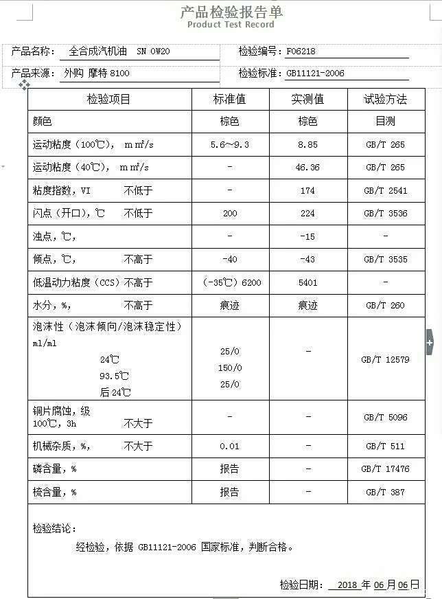 分享一下way0610测试的部分0w20机油测试数据图!