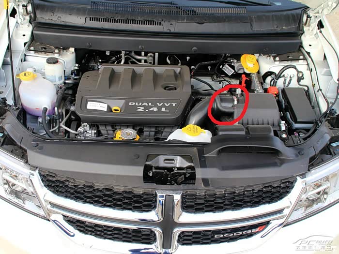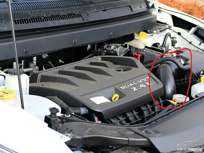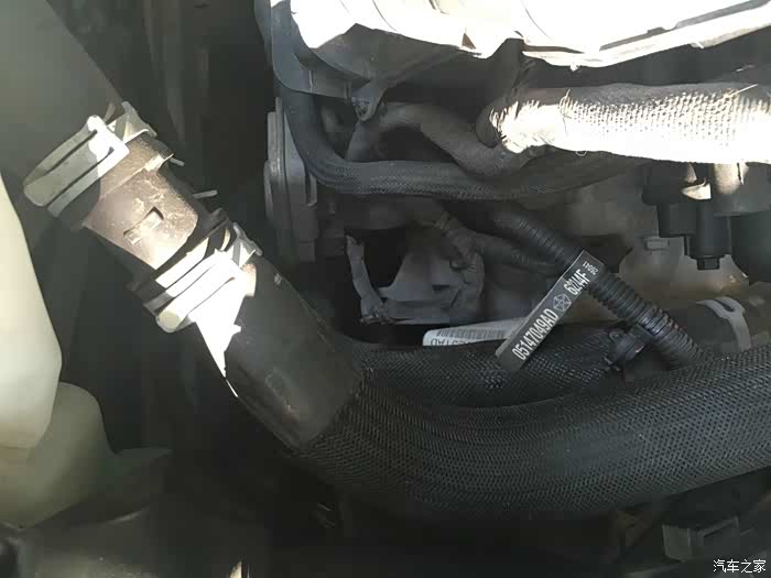 要拆的只有这里和下面连接节气门的2处地方,细的那根直接拔掉就行,用螺丝刀松开卡子就可以拔下粗的进气管了,下面的接口也是一样的。