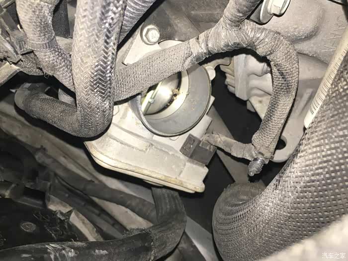 拆节气门很简单,只有4个固定螺丝和一个支架加一个插头,支架可以不拆,但是装的时候会有点碍事,插头直接从两边按下卡扣拔掉就可以了,4个螺丝用套筒拧下即可。