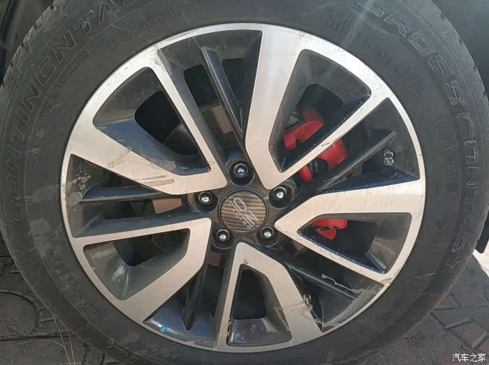 前轮 马牌轮胎 。 骚红卡钳 用红漆手动涂 用1,2年没问题