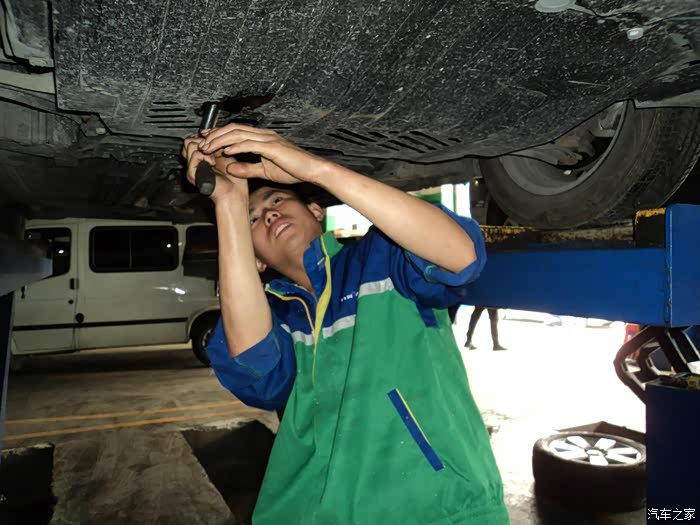 到店后的第一感觉就是大,绝对不像路边店那种几个人的小规模,而且还很规整,没有修理厂那种凌乱不堪的感觉。负责接待的张工很快迎了出来,寒暄几句便让我将车上架准备保养,由于是预约的,省去了等待时间,真的很为客户节省了不少时间,这里要点第二个赞!