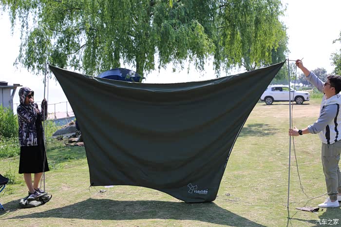 车友们开始搭建天幕,不得不说五一的天气是十分给力,但同时也是特别的炎热。
